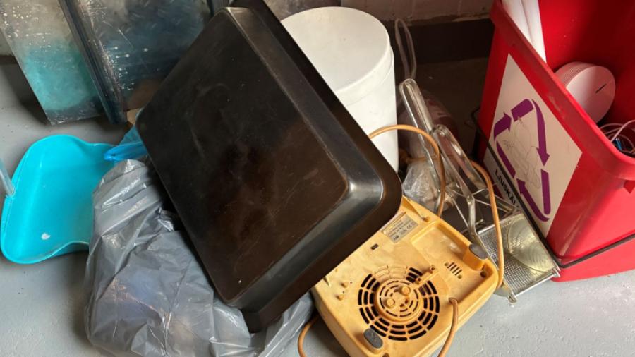 På golvet i återvinningsrummet har det på sistone legat glasburkar, gamla skor, en sophink, kartonger med pussel, en kupévärmare, uttjänta köksredskap, brandvarnare och annat. Trots uttryckligt förbud mot detta. Återvinningsrummet är endast till för sådant som kärlen är märkta med. Allt annat ska du lämna på återvinningsstation, till Returrundan eller liknande.